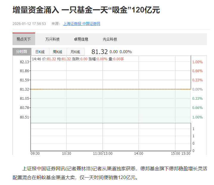 针对这一音尘,德邦基金对南齐.湾财社回话暗意,公募基金居品当日规模数据属于非公开信息,最终以如期汇报为准,并领导投资者幸免被演叨信息误导。但从基金当日的功绩推崇,就能看出资金涌入有多猛。